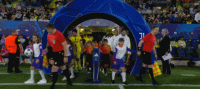 双方球员入场时,尤文图斯球员的表情仿佛在说:"我们真的是来踢欧冠的吗?"比赛即将开始,建议观众朋友们先备好降压药。